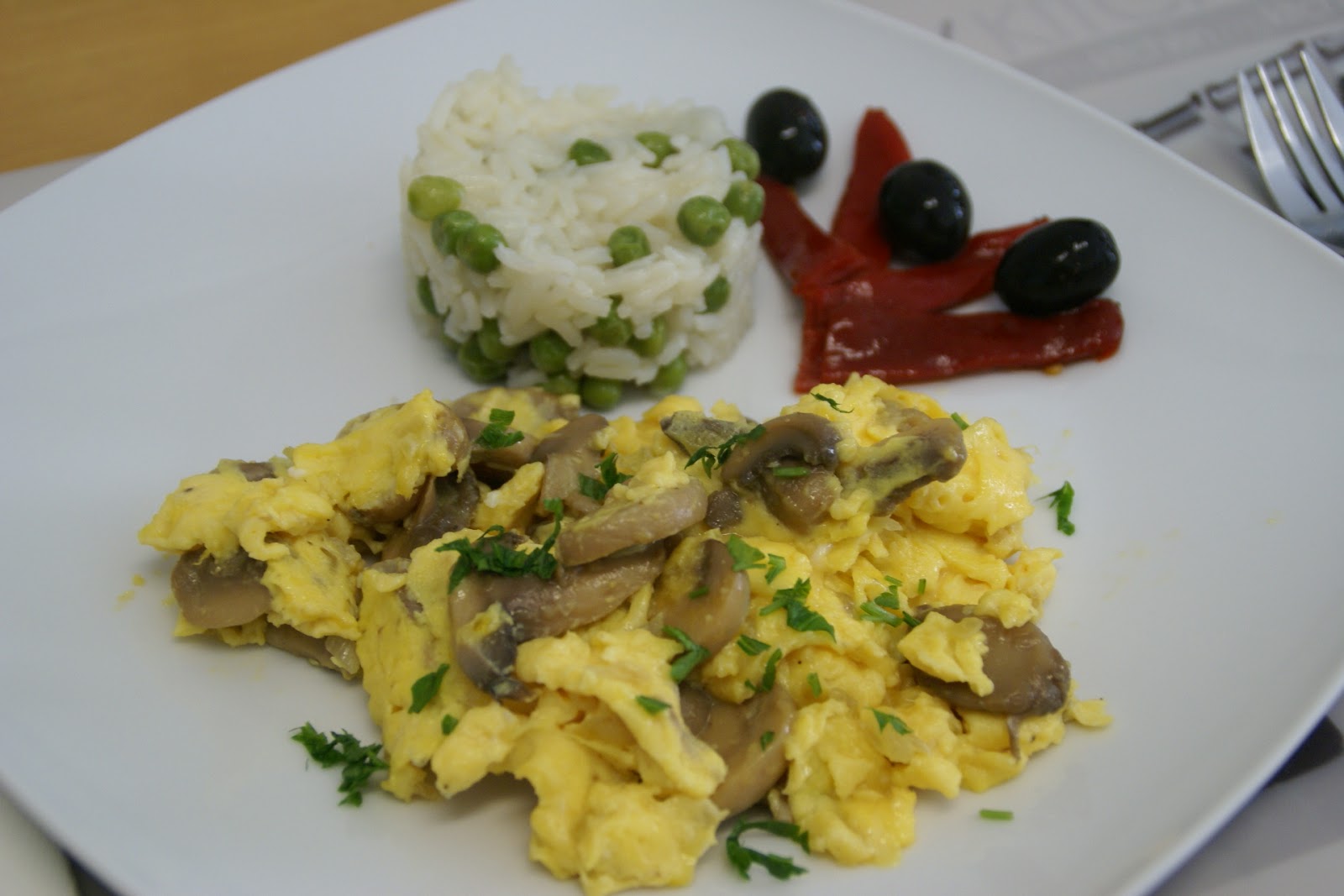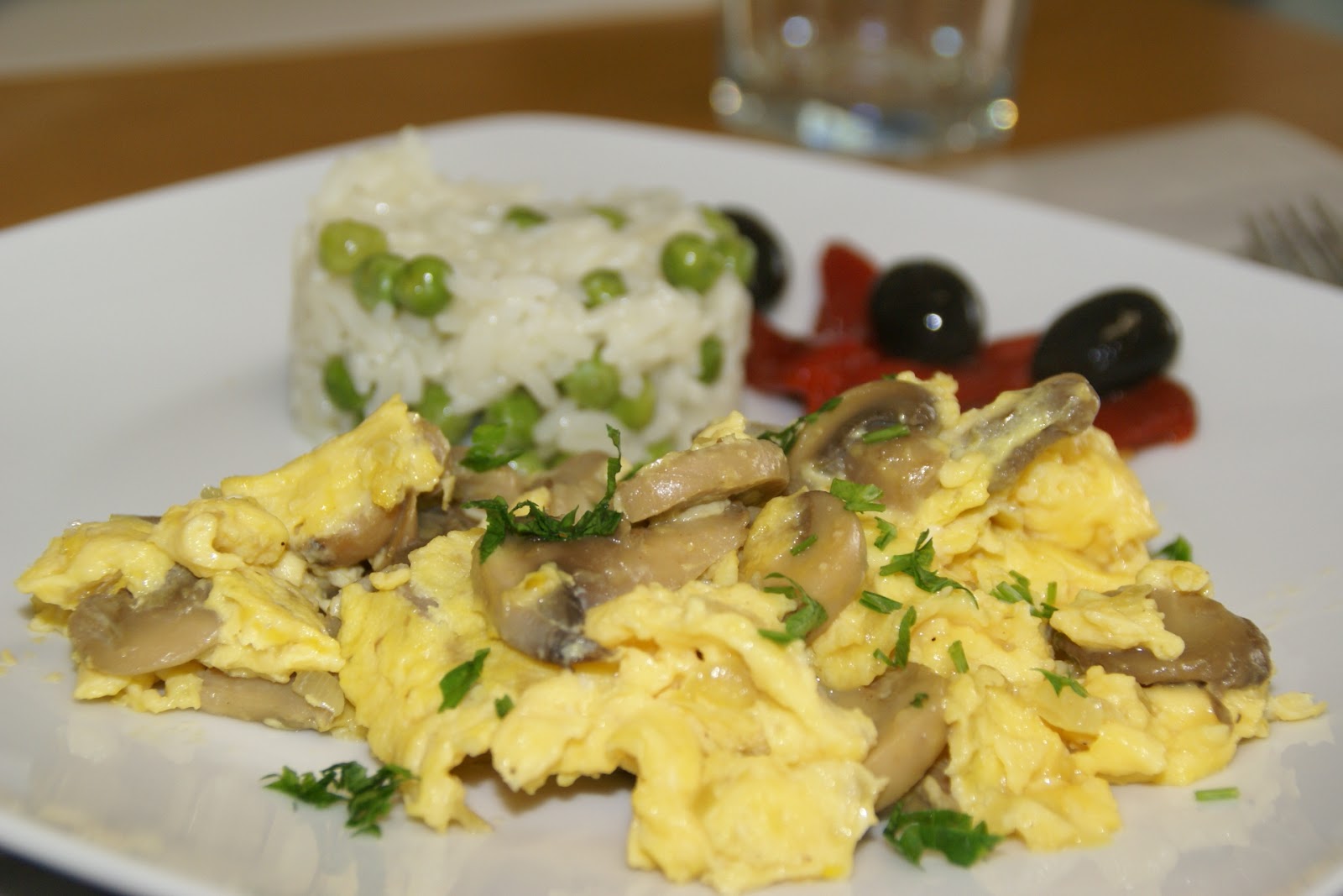 "Revueltos" não é mais do que ovos mexidos. É um prato vulgar, muito popular na nossa vizinha Espanha, no qual basta utilizar os ingredientes que temos disponíveis em casa. Estes foram feitos com cogumelos (enlatados); mas podem ser feitos com muitas outras coisas dependendo da imaginação.