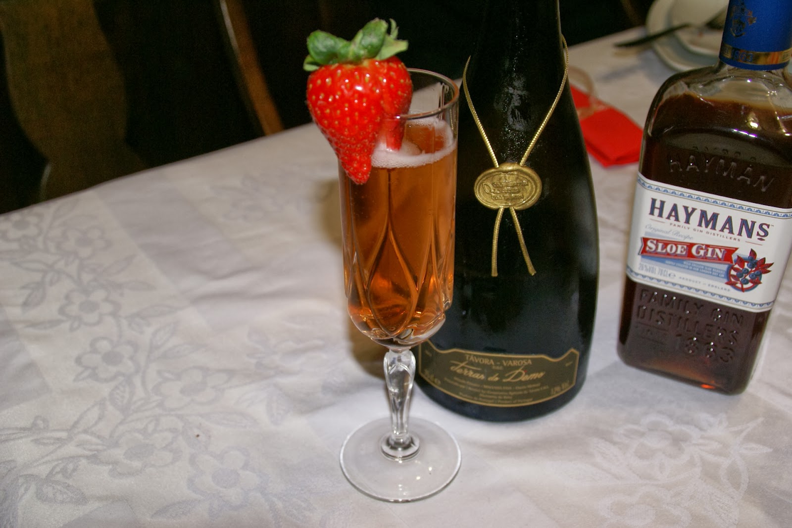 Colocar o morango no bordo do flute. De seguida, adicionar o Sloe Gin e por último, completar com o Espumante ou Champagne.