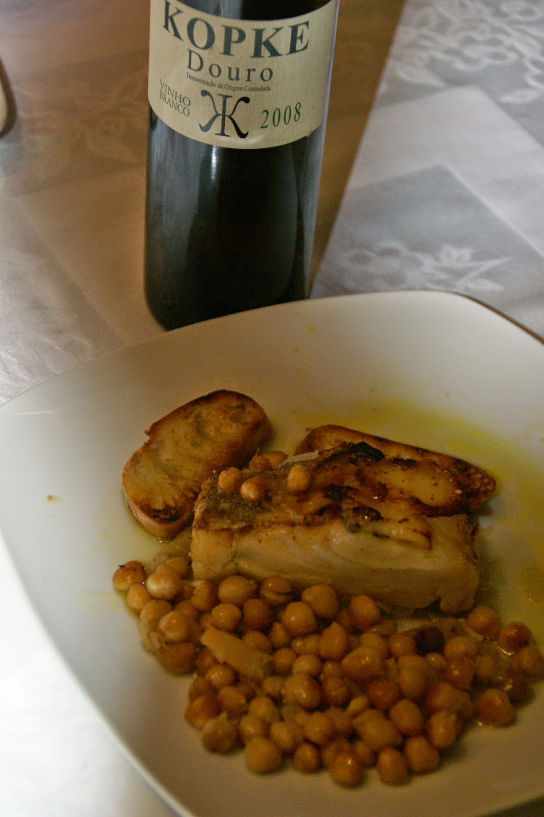 Sirva o bacalhau com pão torrado e pincelado com azeite.
