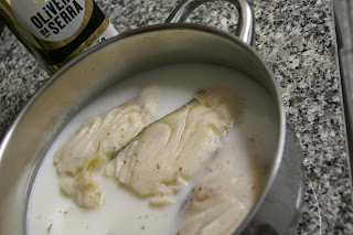 Leve ao lume até começar a borbulhar; desligue o fogo e retire o bacalhau.