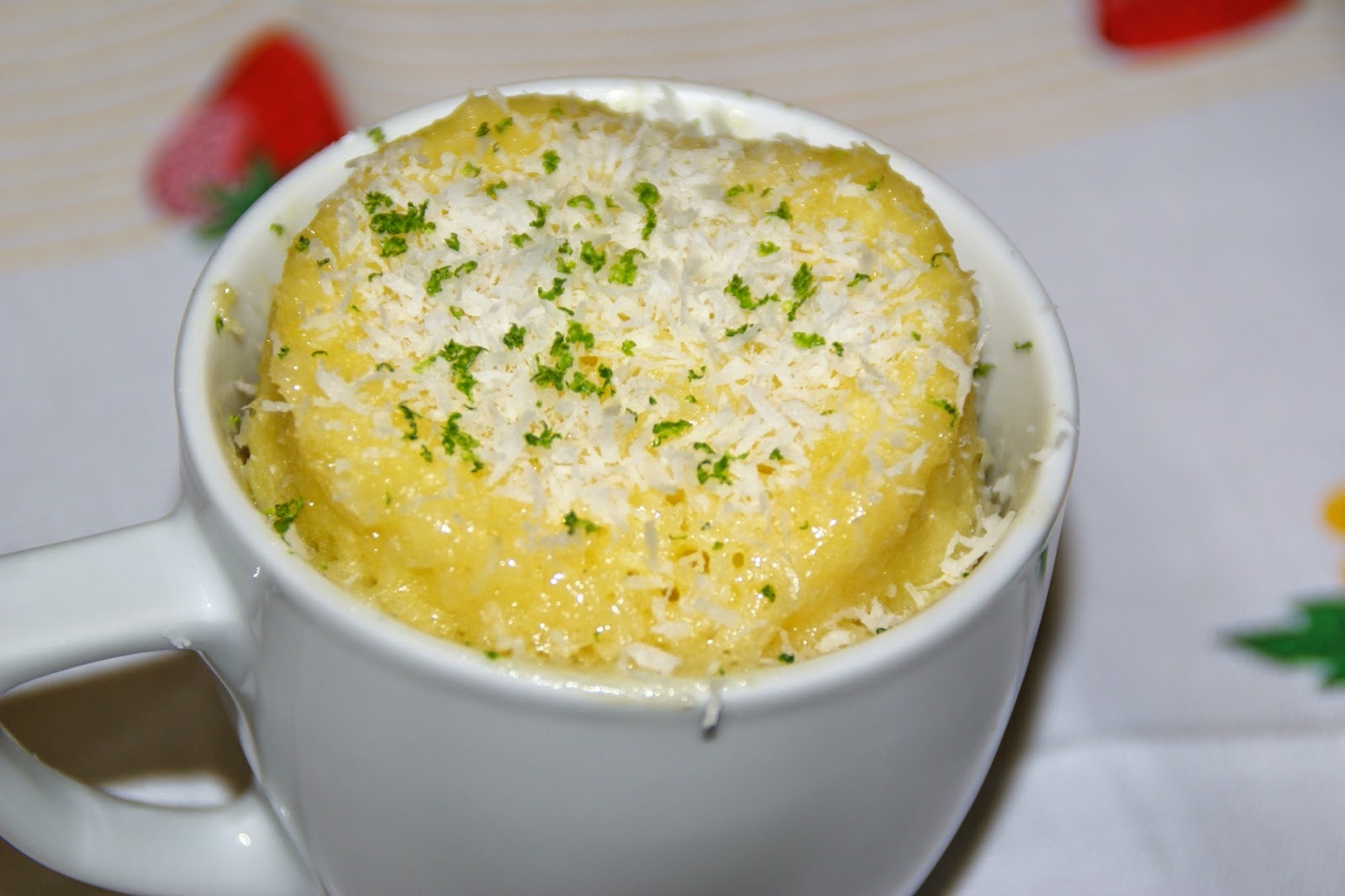 Retire do microondas e polvilhe com coco e raspas de lima. Deixe arrefecer um pouco antes de degustar...