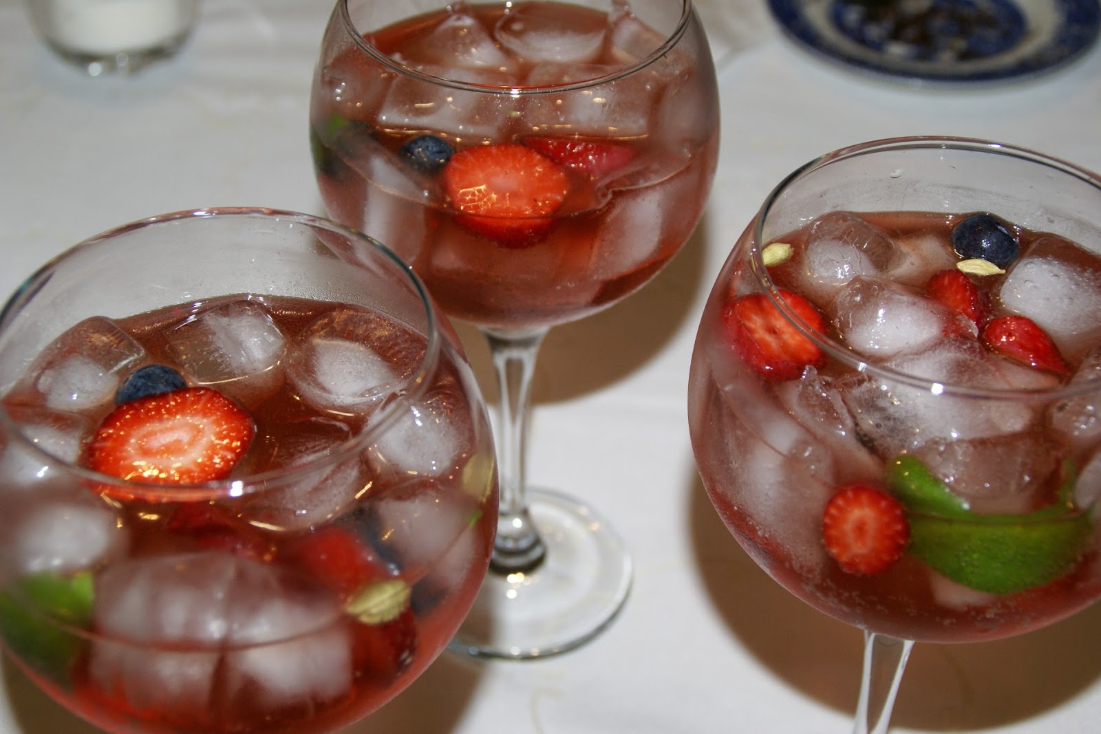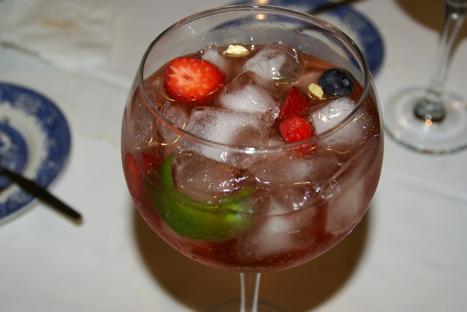 Passe o zest de lima pelo bordo do copo e, adicione morango laminado, o cardamomo e os mirtilos. Com a ajuda de uma colher em espiral verta a água tónica com muito cuidado. Mexa ligeiramente e, depois é só degustar calmamente...