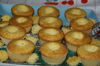 Quando tudo estiver frio, proceda ao recheio dos cupcakes: para isso, basta abrir uma pequena tampa no centro dos cupcakes.