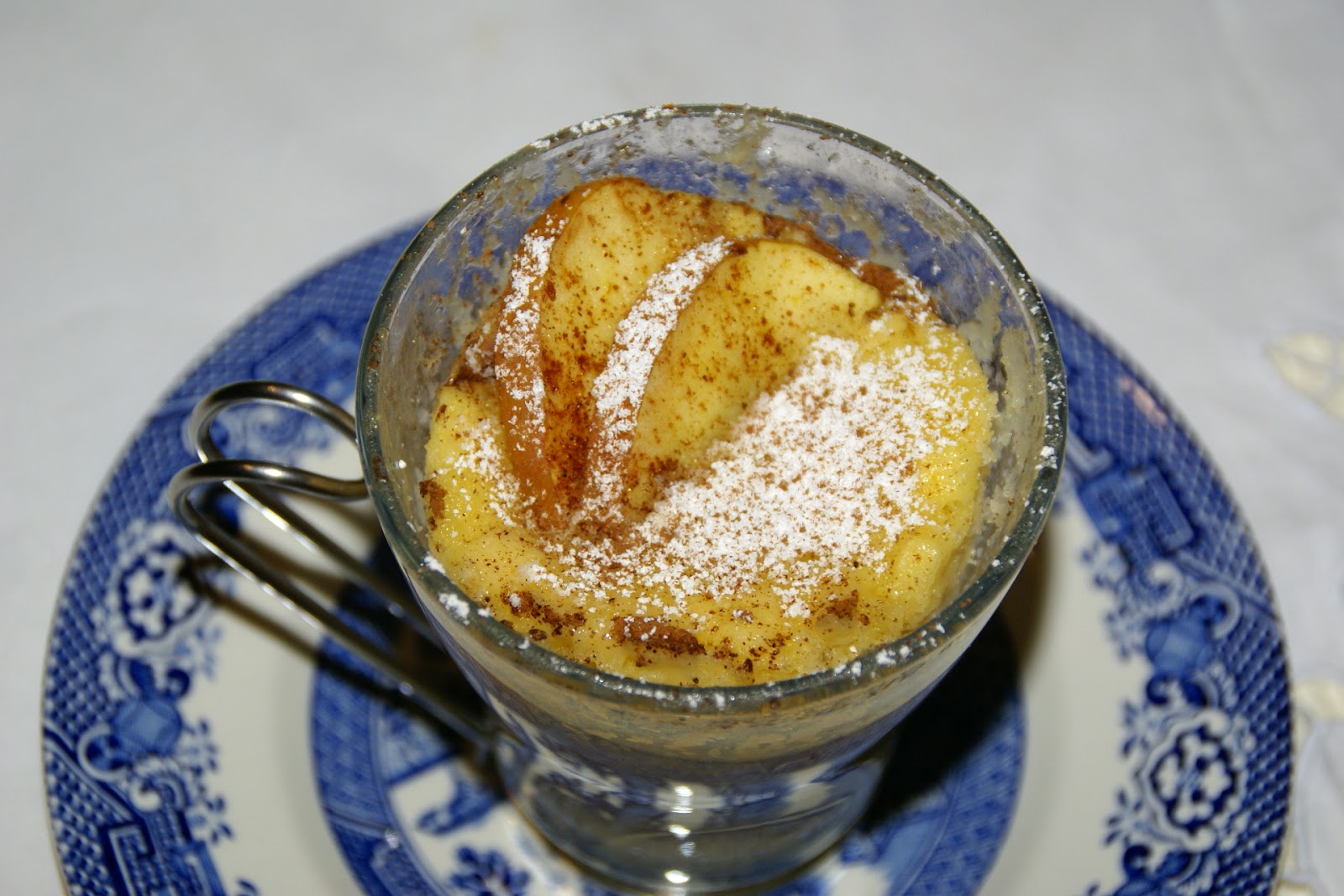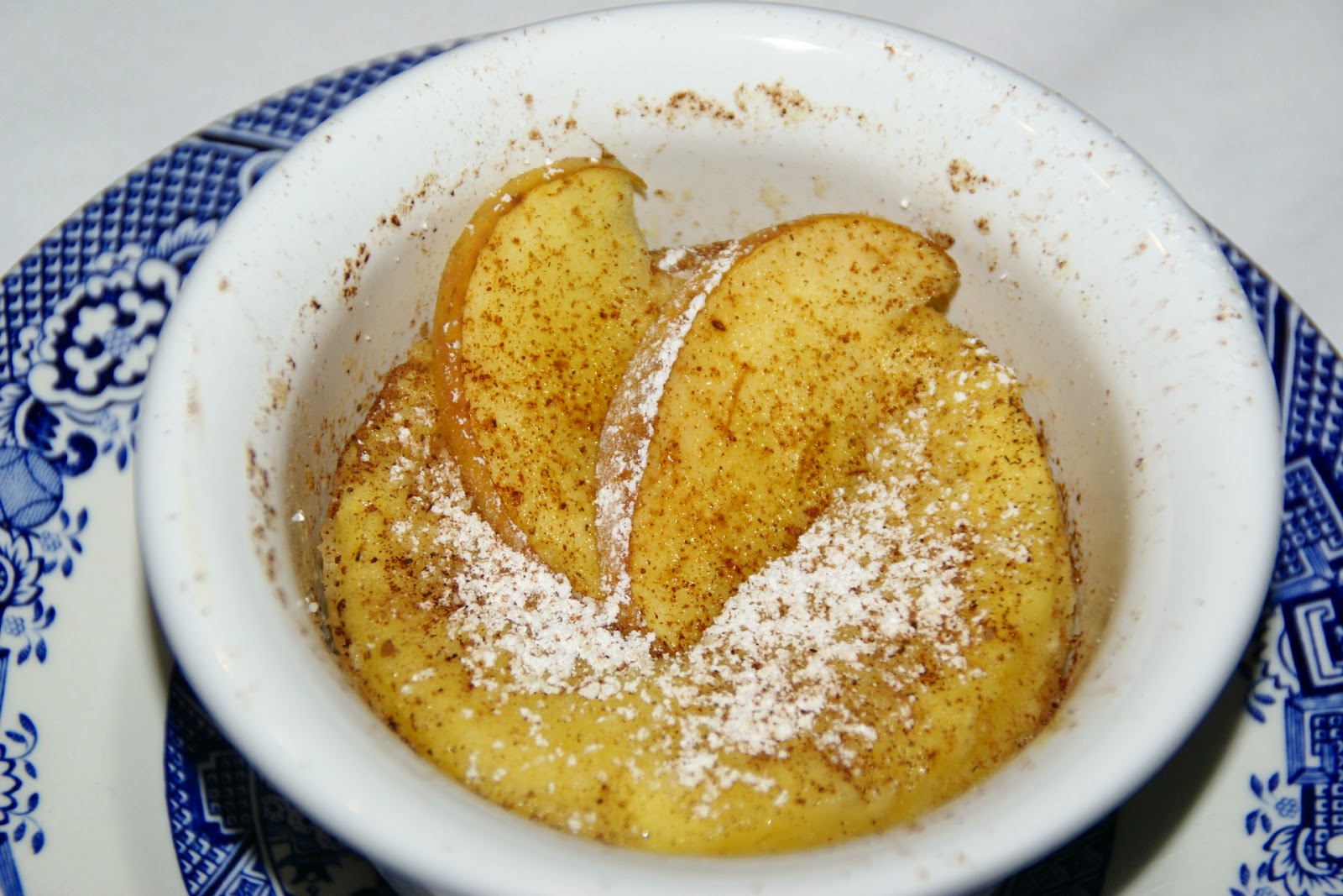 Decore a gosto com fatias de maçã e polvilhe com açúcar e canela em pó.