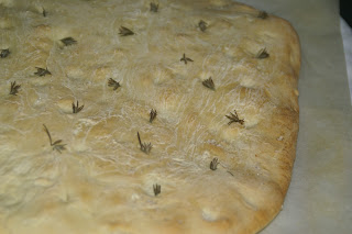 Coloque a Focaccia para cozer durante 20 a 30 minutos ou até que esteja dourada. A minha ficou um tanto esbranquiçada, mas o forno estava a 200º como dizia na receita original.
