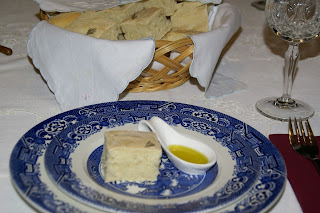 Retire a Focaccia do forno deixe arrefecer ligeiramente e corte em pedaços. Regue com azeite ou sirva com o azeite à parte.