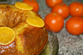 Coloque o bolo num prato de servir e vá regando o bolo com a calda de tangerina ainda quente.