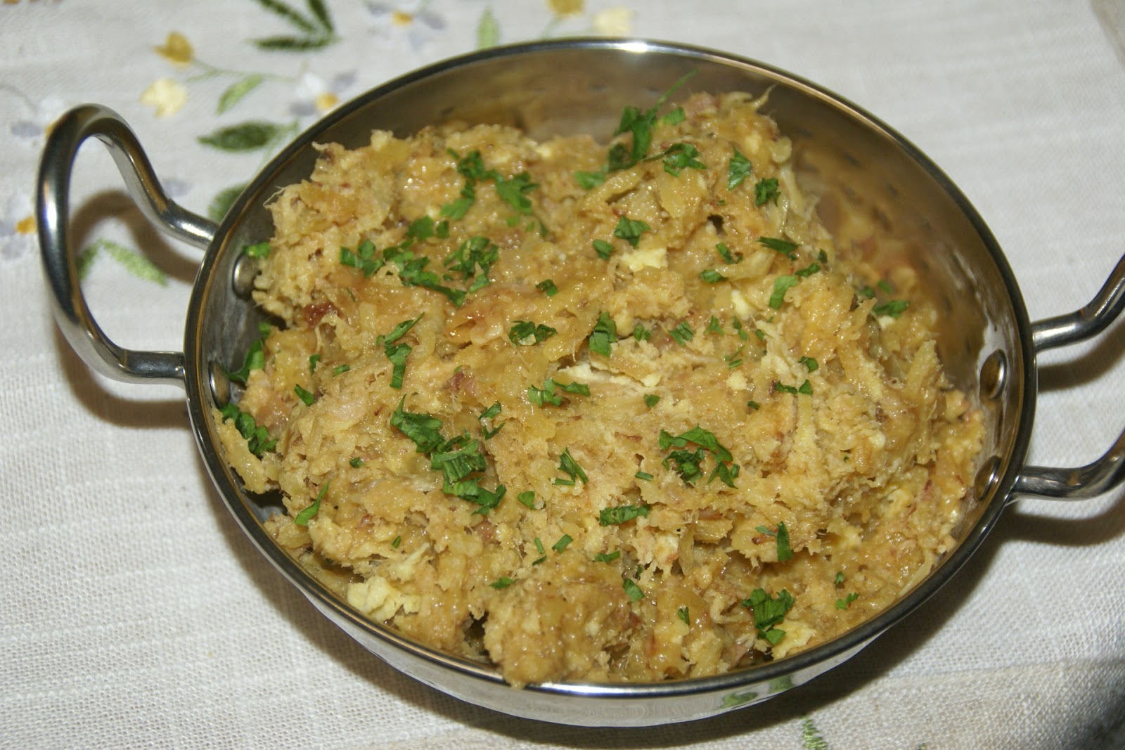 O lume deve estar lento. Mexa de vez em quando; não se quer muito mexido. Retire e sirva quente polvilhado de salsa picada.