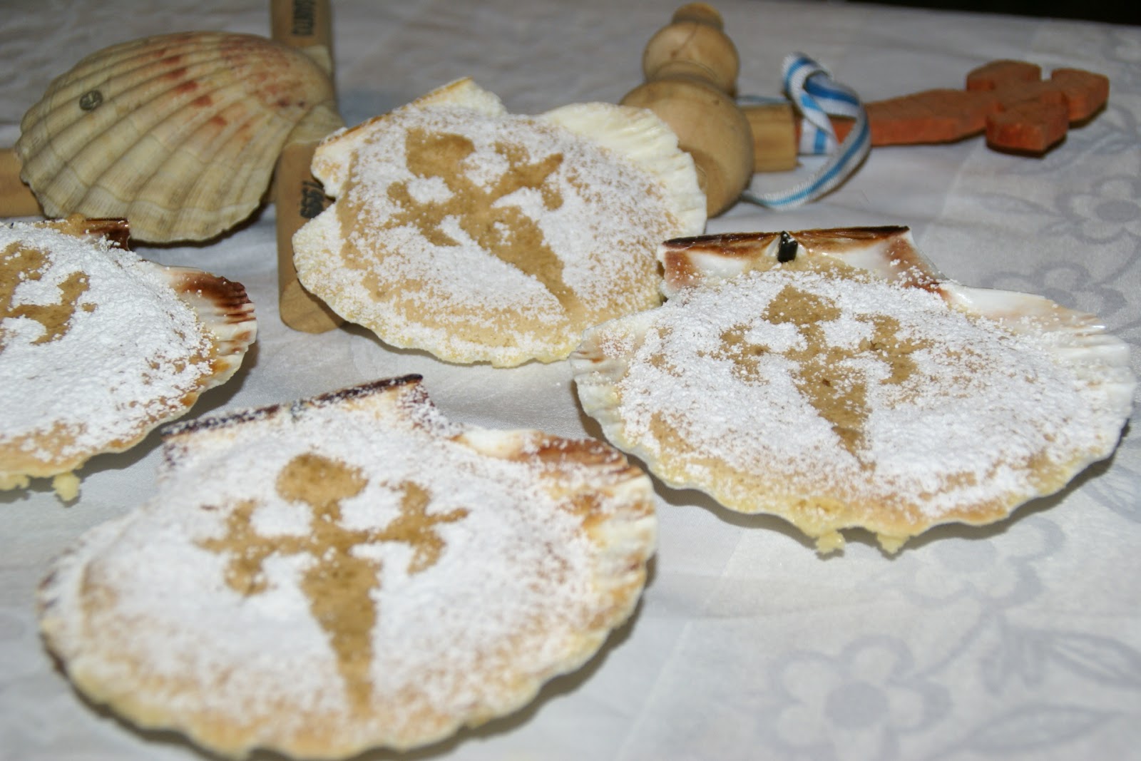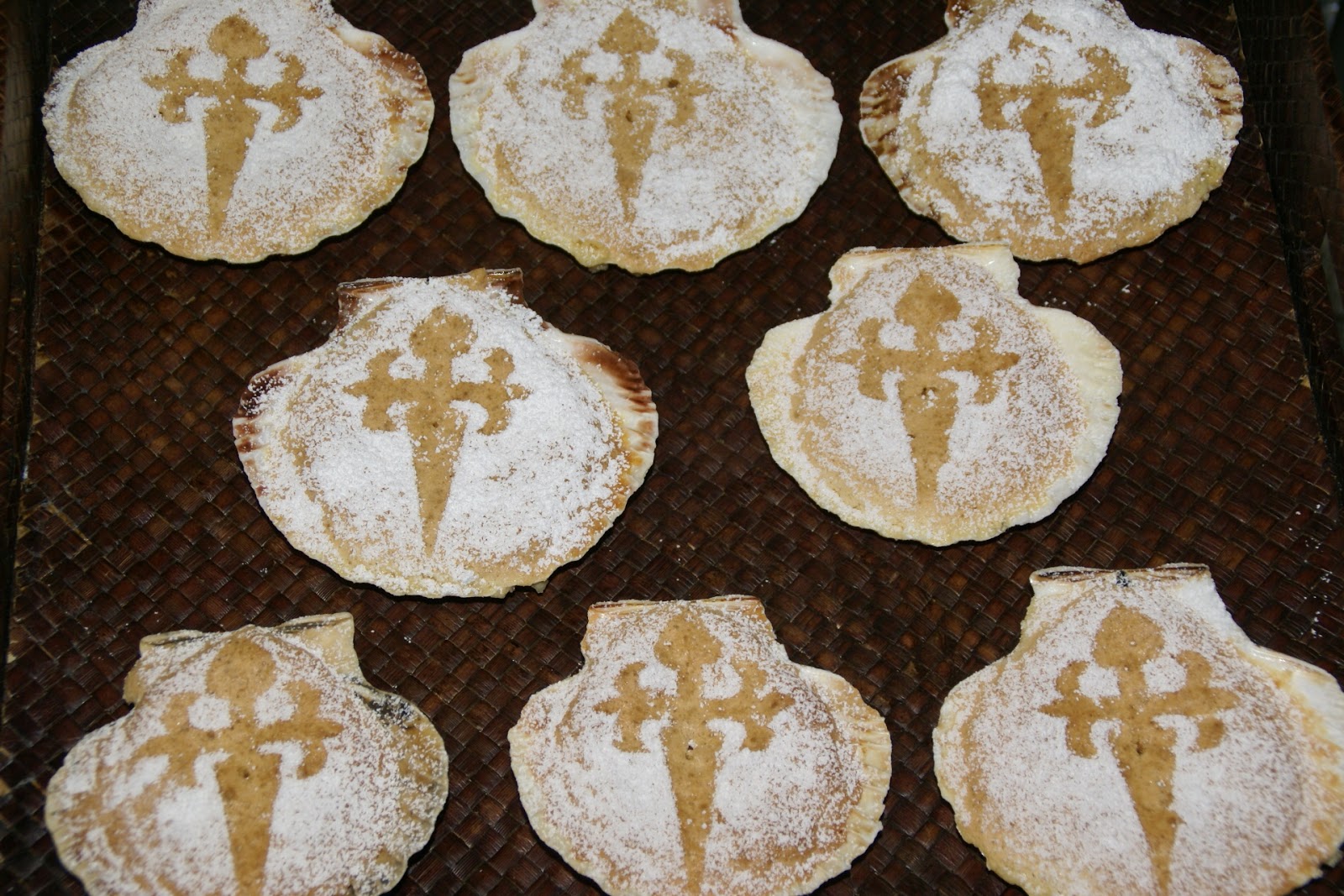 Em vez de usar as conchas pode utilizar uma tarteira de 28 cm: a temperatura do forno é a mesma e o tempo de cozedura é de 25 a 30 minutos. Utilize um molde da cruz do tamanho da forma e polvilhe com açúcar em pó.