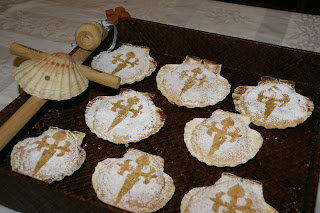 Nota: O molde da cruz retirei da internet e adaptei ao tamanho das conchas de vieira.
